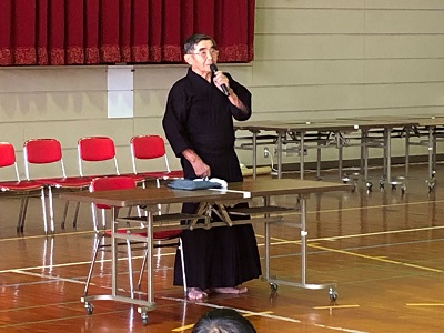 今回は、岡山県剣道連盟相談役の小倉太郎先生による講話があり、その後稽古を行いました。