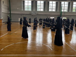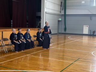 その後、年代別に別れ基本稽古、互角稽古を行いました。休憩を挟んだ後、